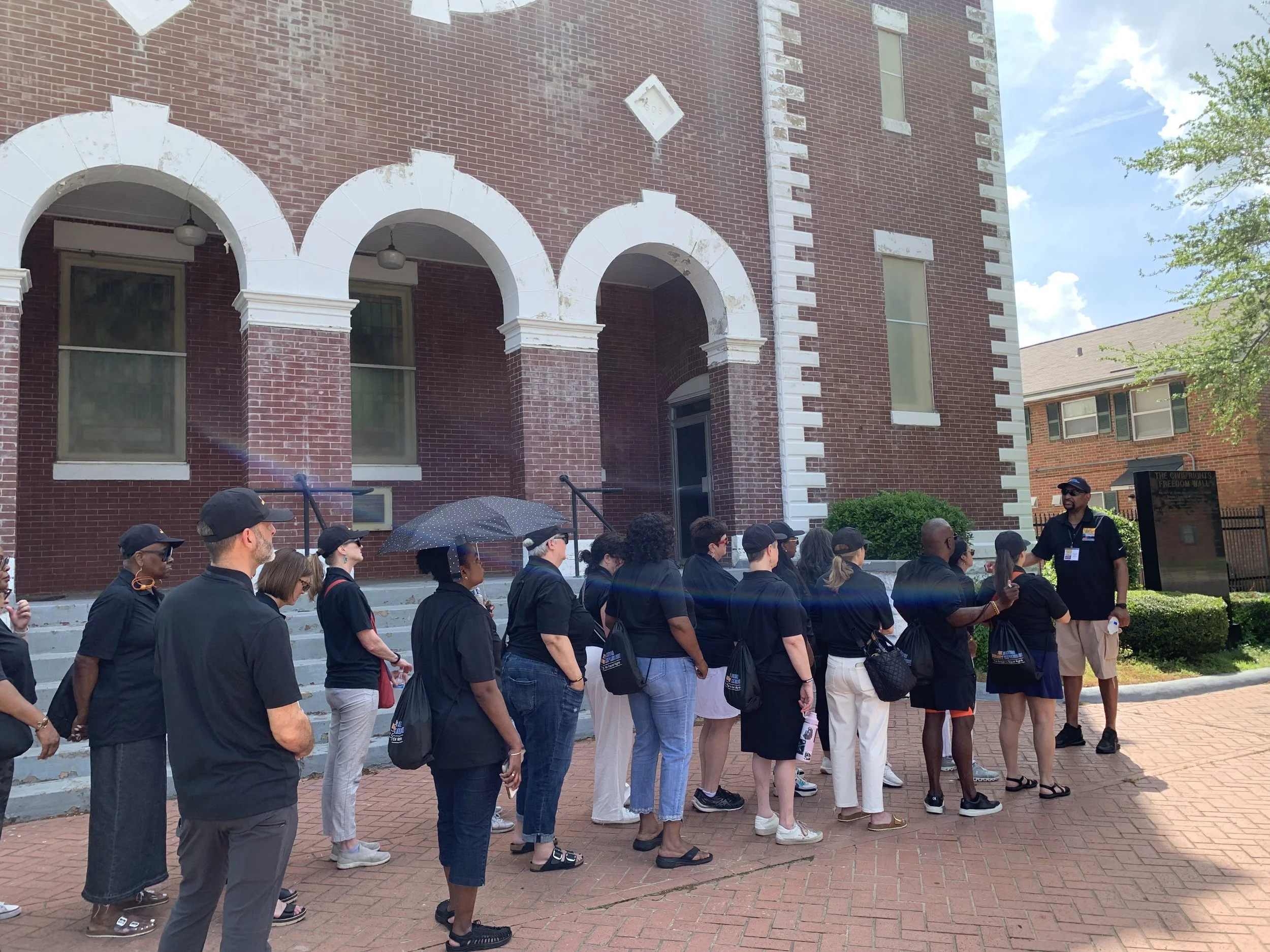 School knowledge also states that after the war, explains David, “we all got back together again, yet with blacks staying behind in their place throughout the Jim Crow era”. But then came the Civil Rights legislation and Martin Luther King’s “I have a dream speech”, David paraphrases what the visitors know, “and we are all equal now”.